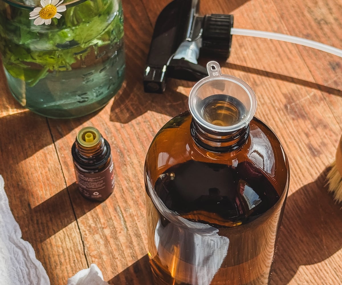 - 16 oz glass or reusable spray bottle– Clear or amber. Nothing fancy, just sturdy and refillable.